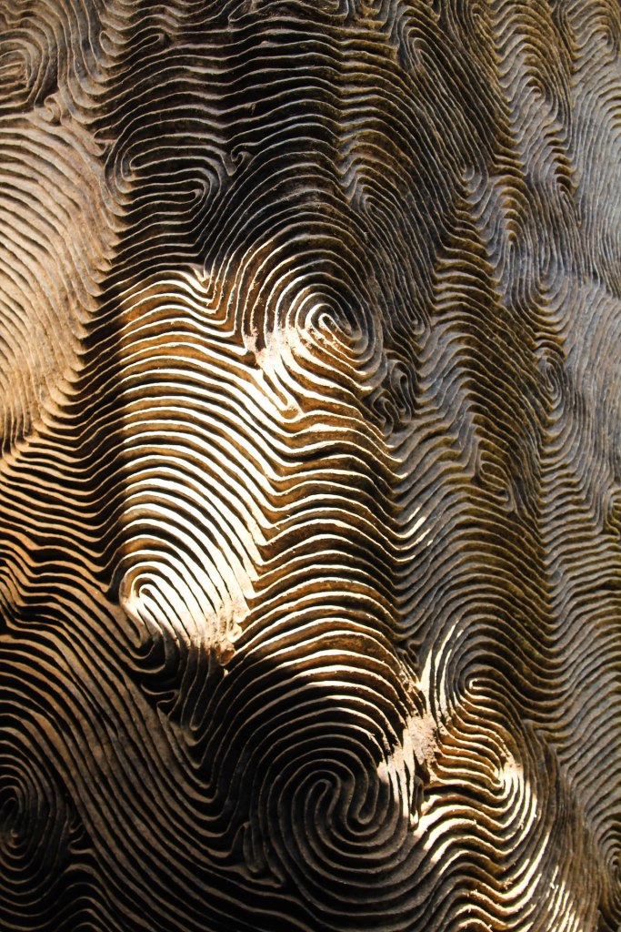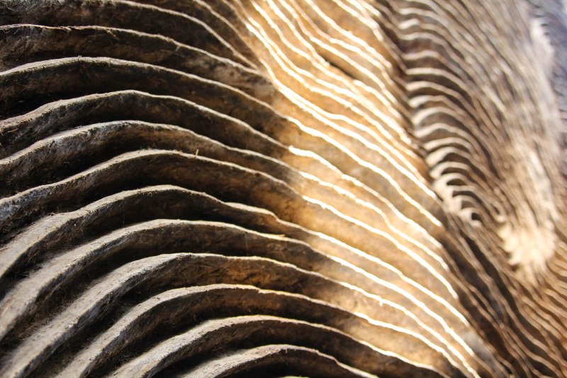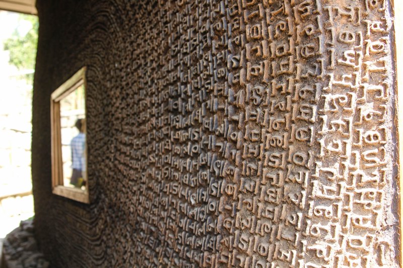When I visited the place there were a lot of men chiseling stone so it felt that we were in a sound piece, surrounded by false banana plants and ginger. These dizzying forms of housing made out of mud, cow dung, straw and other organic materials in very detaled patterns added to the lovely strangeness of the experience. There were even cows! Well, naturally.