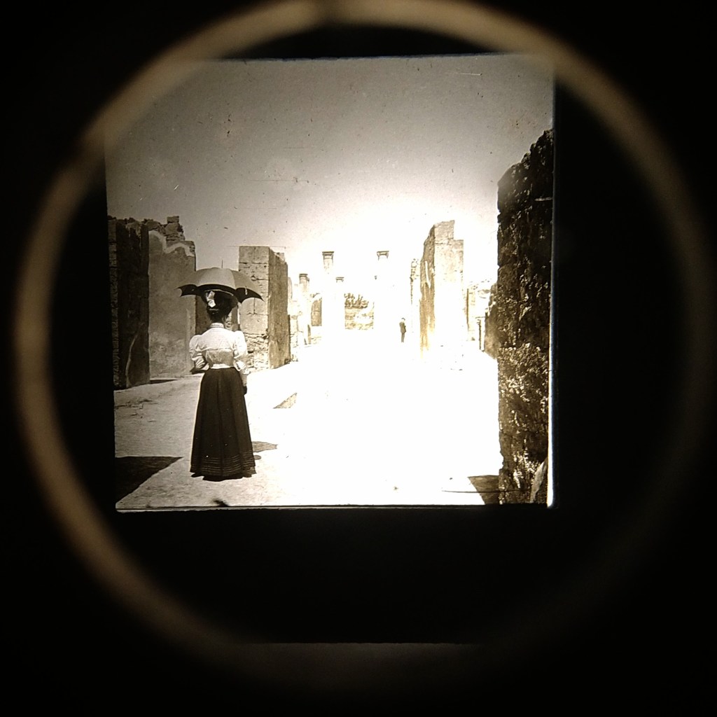 Yesterday I had the chance to see some interesting amateur travel photography at the Tiny Gallery. Surprisingly, I was told that the gallery has a stock of 5000 glass negatives. I’m posting this for the sheer joy of sharing the one picture I took with my mobile phone at the opening, and to encourage you to visit the show if you’re in the vicinity. Shamefully, and contrary to my usual habits, I forgot to check the source of the image, which also happens to be on the exhibition poster, so please forgive me.
