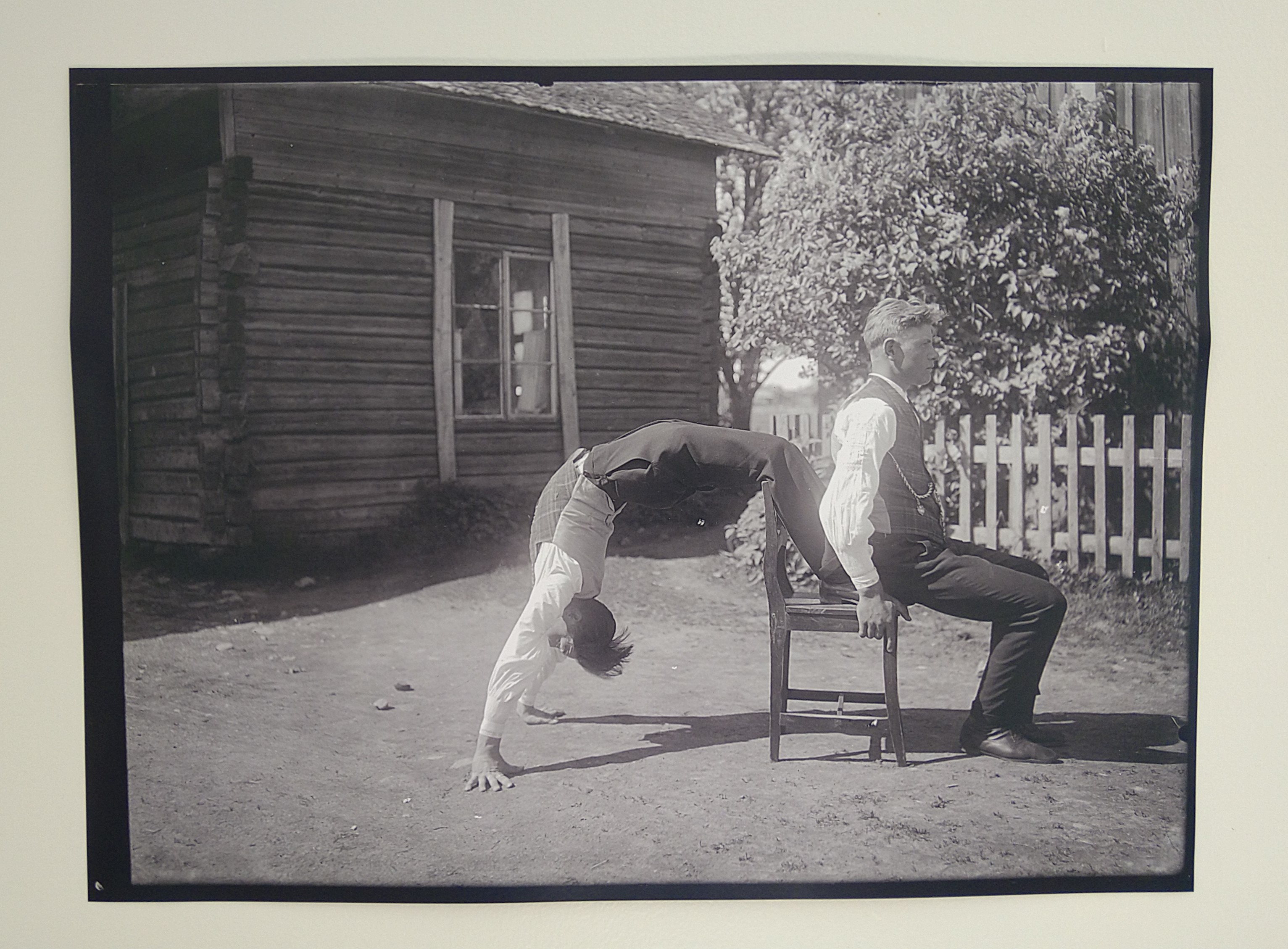 When Stejskal carried out his fieldwork, many of the games and strength tests were no longer a living tradition, but the older men remembered the games from their youth. In an interview in 1985, Stejskal recalls: “The old men told me how the tests were done, asking one of their sons, farmhands or relatives to perform them. I took advantage of this and took the picture at just the right moment. It wasn’t that easy.” Here, one must remember the photographic technology of the time, with large and clumsy bellows cameras that lacked automatic features and glass plates that had to be handled with care. Indoordocumentation in badly lit cottages during winter required separate flash units, which made photography even more challenging.